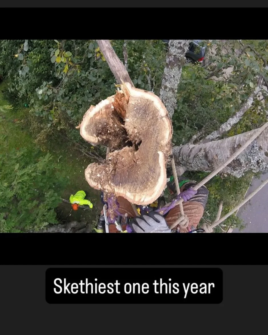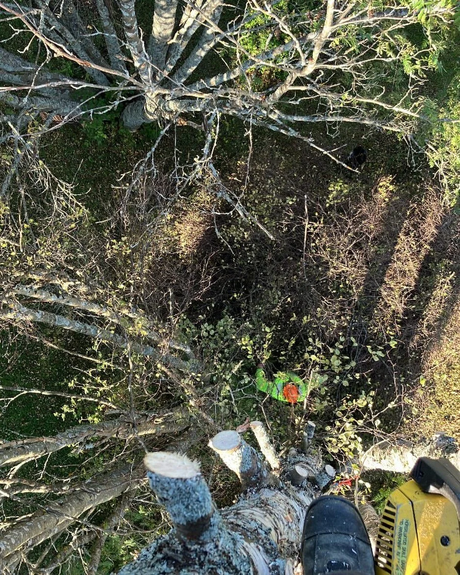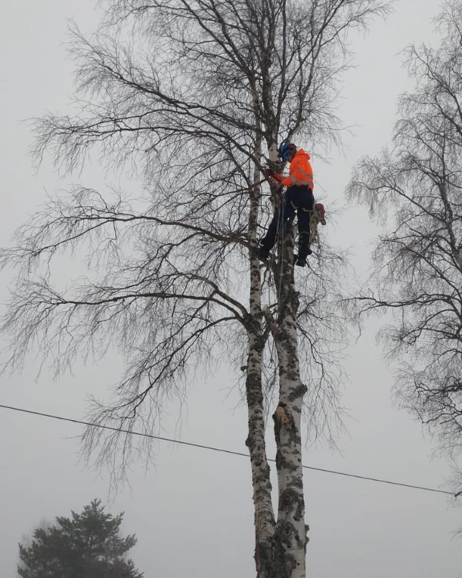 Vi jobbar med tar ner träd som kräver speciella metoder.